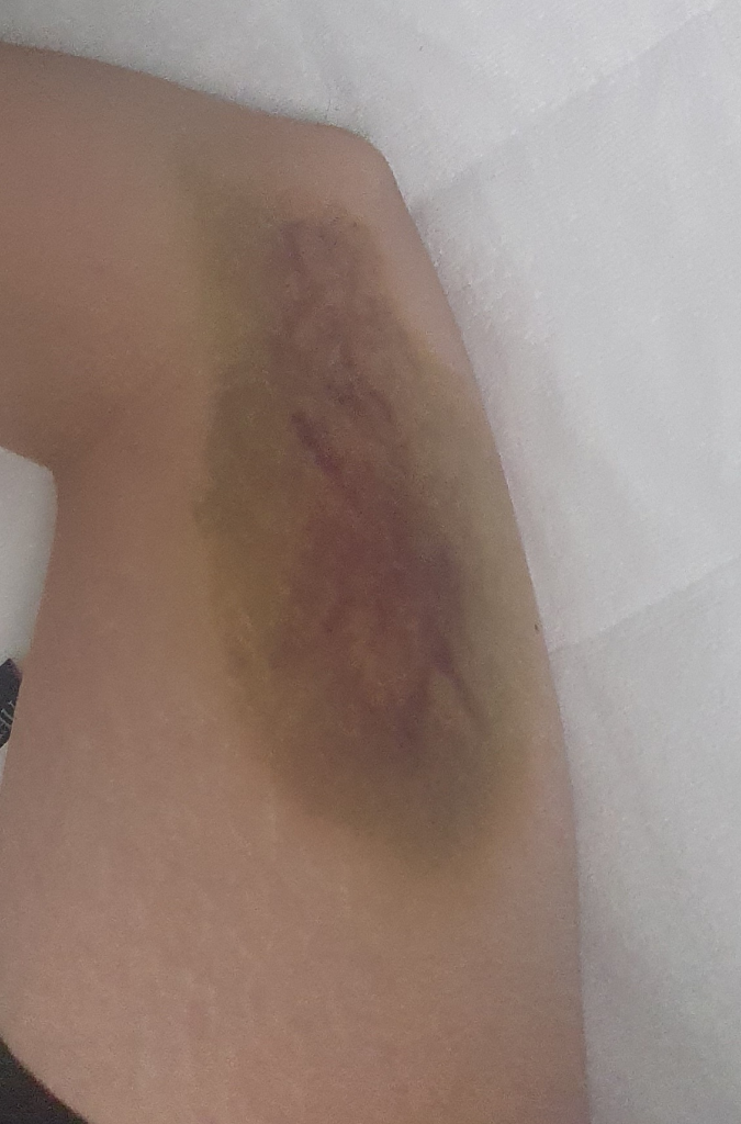 관절부위는 문제가 되는 경우가 있지만, 팔부위 부딪힌 것은 크게 문제되진 않을거 같네요. 악화양상이면 병원진료 고려하고,, 비슷하고 호전양상이면 조금 지켜봐도 될거 같습니다.