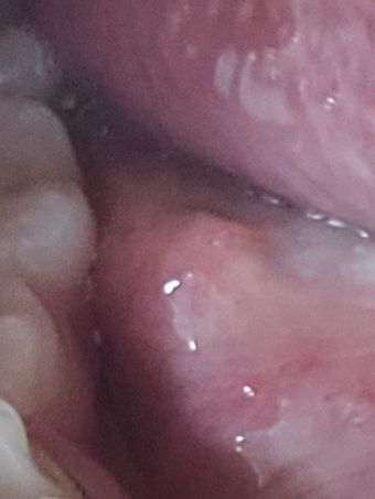 저 사진을 보시면 하얀 돌기가 산봉우리처럼 툭 튀어나와 있어요. 그런데 1년이 지나도 사라져주지 앉고 자리를 지키고 있습니다. 원래는 아주 동글동글했는데... 구강암일까요? 치과로 가야 하나요?