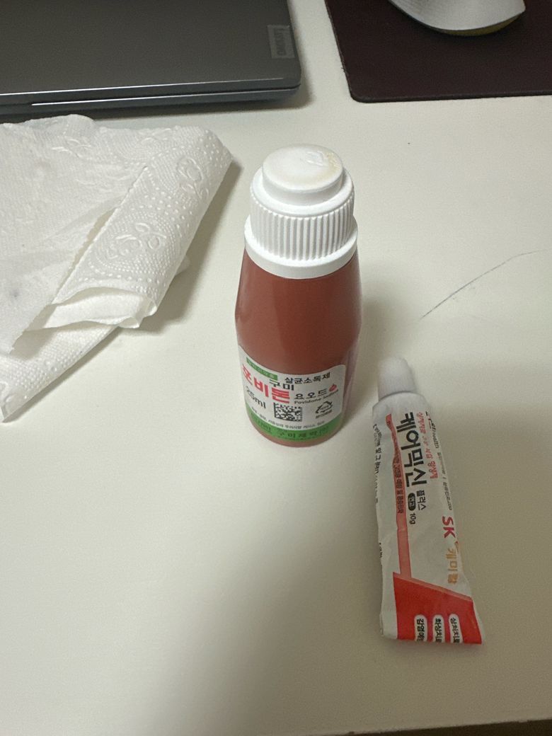 빨간약바르고 15분 말리고 물티슈로 닦은다음에