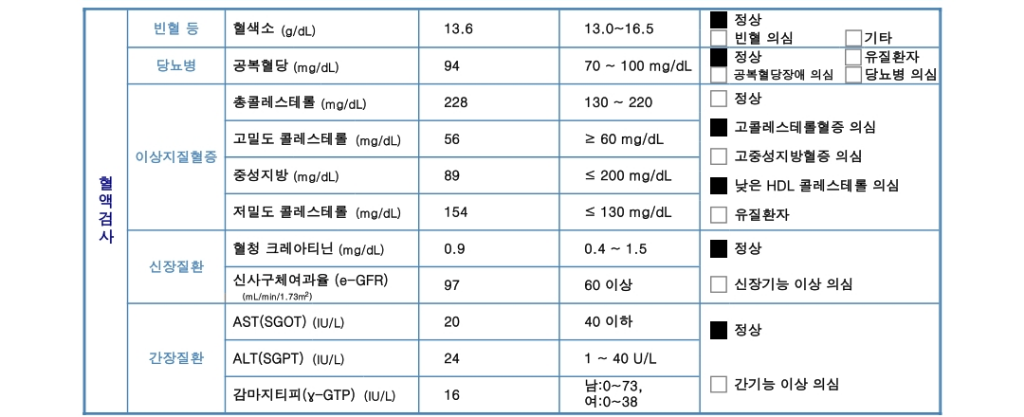 콜레스테롤의 세부항복중 저밀도콜레스테롤이 150대로 높아진 상태입니다.