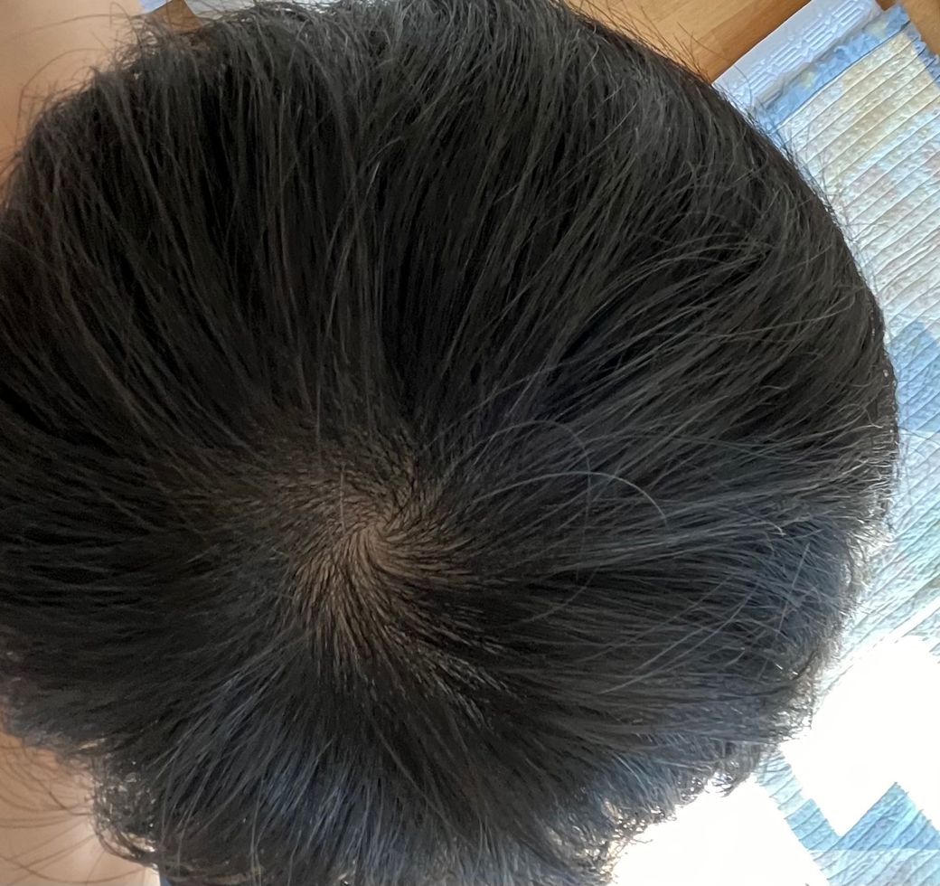 보통 중학생쯤나이에는 탈모가 발생하지않습니다. 사진으로볼때는 숱의양이나 형태로보아 탈모가 진행중이여보이지는 않습니다. 경과관찰하세요