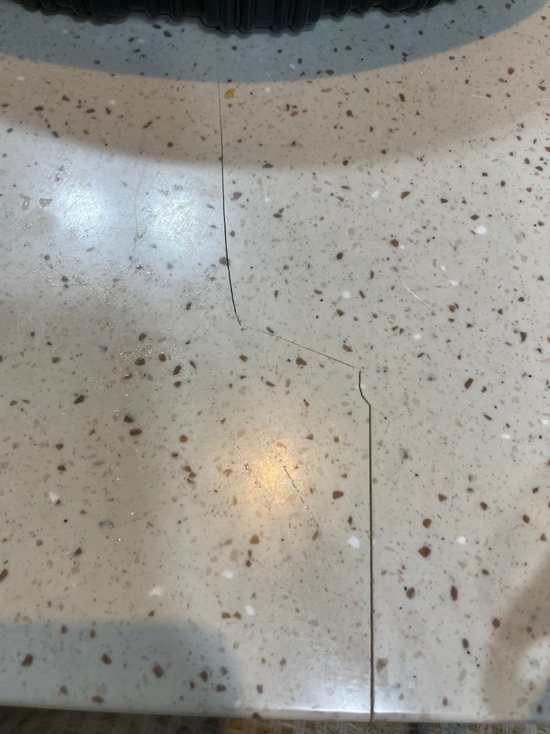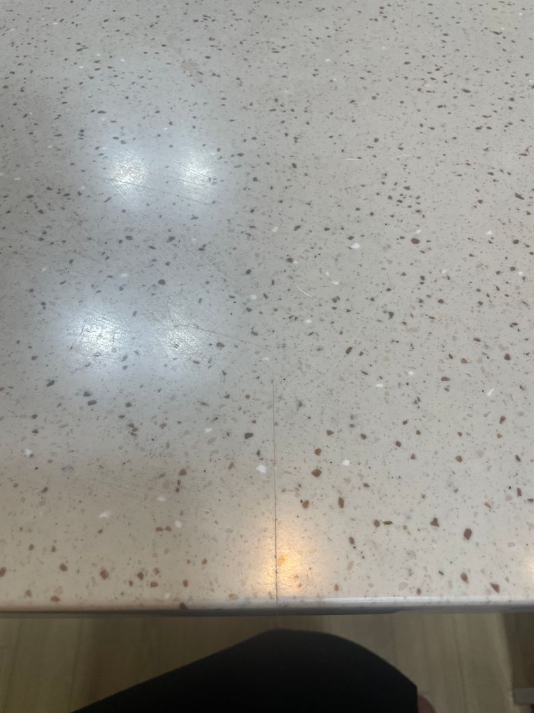 배달음식용기를 올려서 식사중이었는데 쩍 하는 소리가 들리더니 대리석에 크랙이 생겼습니다