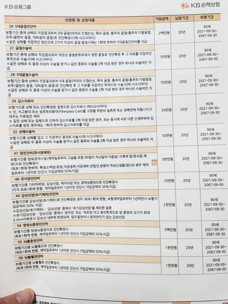 KB손보 상품중에 유사암진단비가 적게 가입되어 있고 일상상활배상책임담보가 없어 아쉬운 부분입니다.