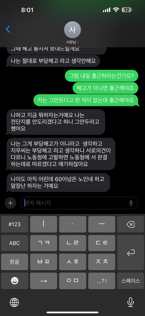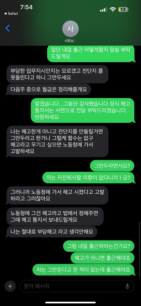 문자로 해고통보를 받았습니다. (직장내 괴롭힘)