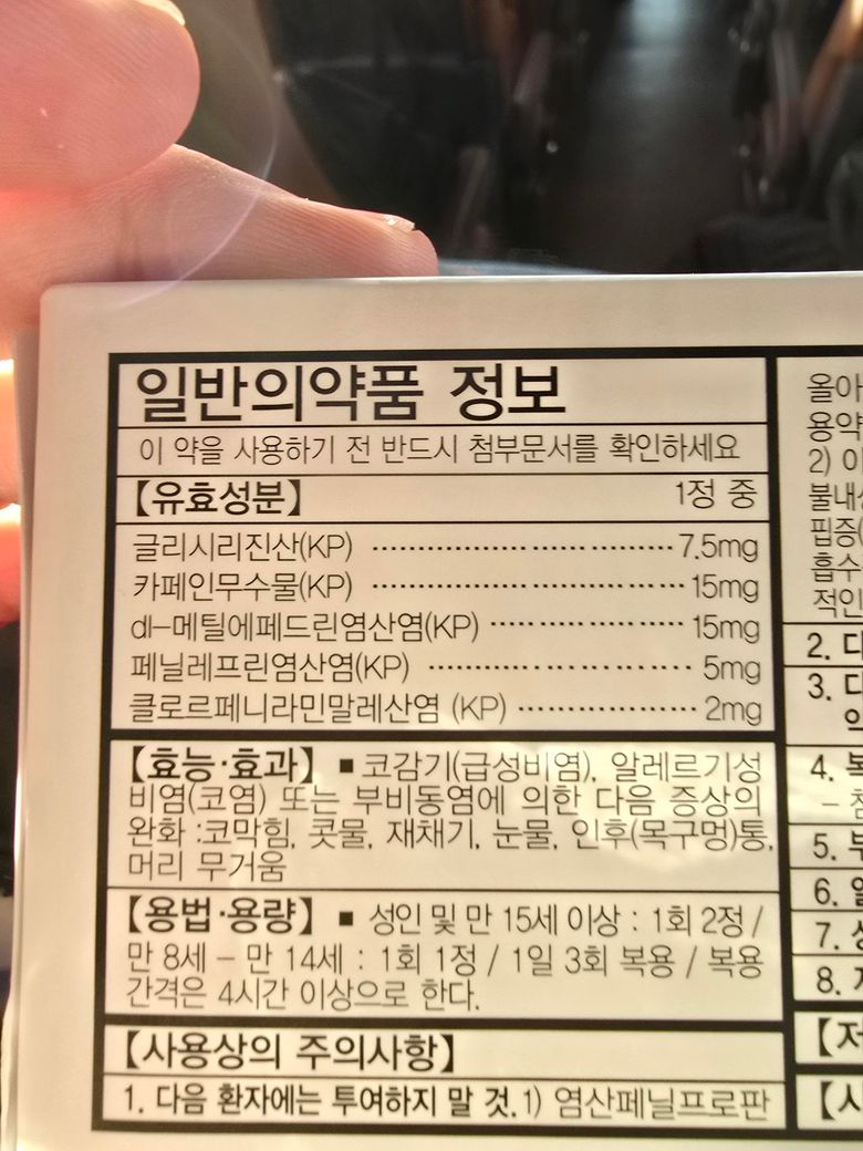 아침 8시에 코푸시럽 하나, 세리페엑스(1알당 글리시리진산 7.5 카페인 무수물 15, dl-메틸에페드린염산염 15, 페닐레프린염산염 5, 글로프페니라민말레산염 2) 2알 13시에 코푸시럽 하나, 세리페엑스 2알을 먹었는데 20시쯤에 술을 마셔도 상관 없을까요? 빠지기 애매한 자리인데 생맥주 한잔 정도도 어려울까요? 만약 마신다면 간에 심한 무리가 가려나요..?
