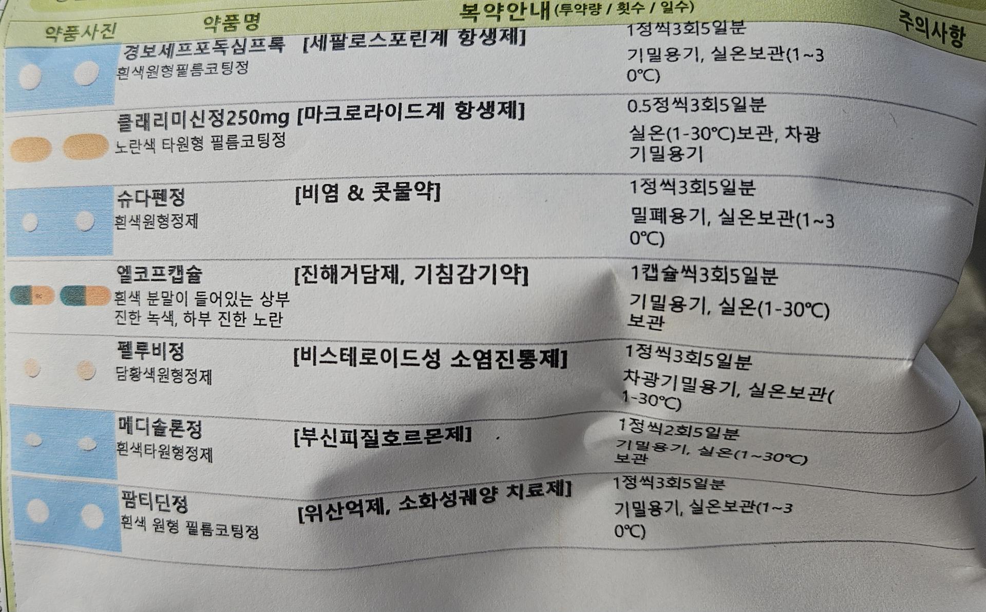 사진 처방은 대부분 하루 3회(8시간 간격)로 맞춰진 구성이라, 임의로 하루 2회로 줄이거나 “아침약을 점심에, 점심약을 저녁에”처럼 밀려 먹으면 항생제 치료 효과가 떨어지고 증상이 길어질 수 있습니다. 아침 식사를 안 하셔도 공복으로 버티기보다는 바나나, 요거트, 우유 한 컵 정도라도 드신 뒤 복용하는 편이 속 불편을 줄이고 꾸준히 3회 복용을 유지하기 좋습니다. 특히 항생제와 소염제, 스테로이드는 규칙성이 중요해서 가능하면 점심, 저녁, 취침 전으로 3회 간격을 맞춰 드시는 쪽을 권장드립니다. 정말 2회밖에 못 드시는 상황이면 처방 자체를 1일 2회 용법으로 바꾸는 게 맞아서, 현재 방식으로 줄여 드시기보다는 처방받은 곳에 복용 패턴을 말하고 조정받는 흐름이 안전합니다. 감사합니다.