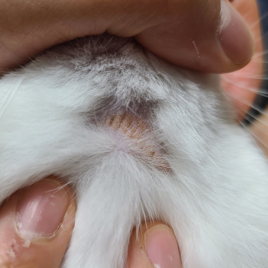 밑에 사진같이 턱 밑에만 털이 빠져있는데