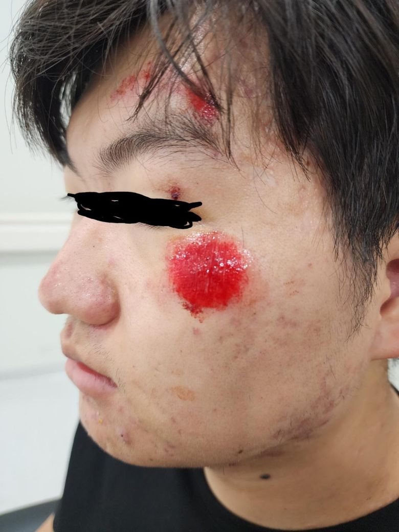 바이크하고 충돌해서 날라갔는데 얼굴 쓸려서 이렇게 됐네요... 지금 피부과에서 3일+다친 당일날 늦은 밤이라 응급실에서 드레싱 받아서 총 4일째 드레싱을 받은 것 같습니다. 회복기간은 어느정도이고 흉터가 남는다면 많이 심하게 남을까요? 답변 달아주시면 감사하겠습니다 ㅠ