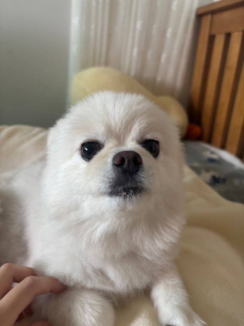 원래 포메는 2.5~3.5키로 정도로 작잖아요 등길이도 짧고 근데 저희집 포메는 얼굴이 스피치도 안섞인 일반포메인데 처음에는 살이 쪄서 무거워지는줄 알았어요