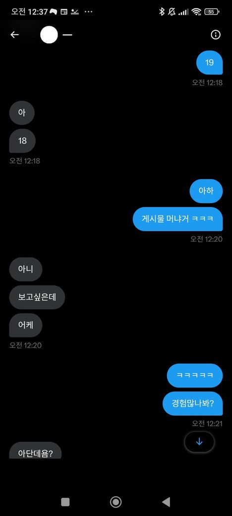 트위터 꼬평글 있길래 대화하다가 제가 게시물에 대물 보고싶다더니 많이 오냐고 물었고 걔가 눈호강 중이라고 대답하고 나도 크고 이쁘냐 걔가 물어봤어요 걔가 그냥 보내봐 라길래 보냇더니 차단당해서 다른 계정 타고 혹시 나 왜 차단햇냐고 물엇더니 별 이유 없었다고 하더니 죄송하다고 사과하더라고요 제가 그래서 아니라고 좋은밤 되라고 햇더니 좋아요까지 했어요 참고로 걔 18 나 19인데 이거 문제 되나요?