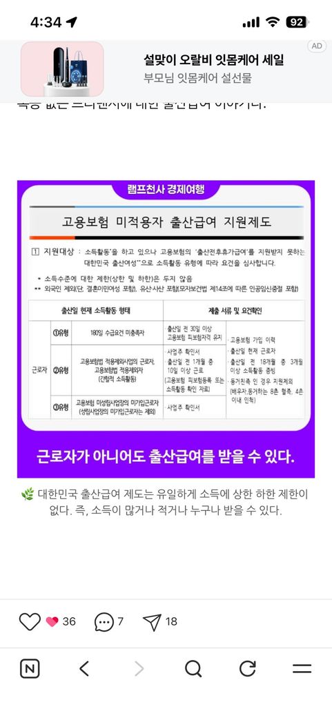 프리랜서 임산부 출산급여 관련해서ㅠㅠ