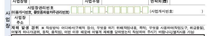 안녕하세요 산재신청시 회사 사업장관리번호 적는부분있더라구요