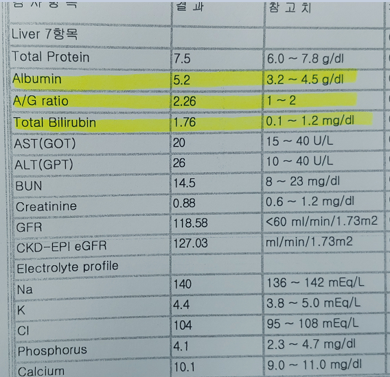 혈액검사상으로 총빌리루빈이 높은 것 같은데요..