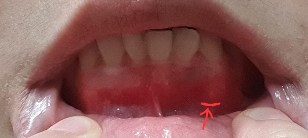 치아 송곳니 뿌리 조금 밑에 없던 하얀색 무언가가 생겼어요.