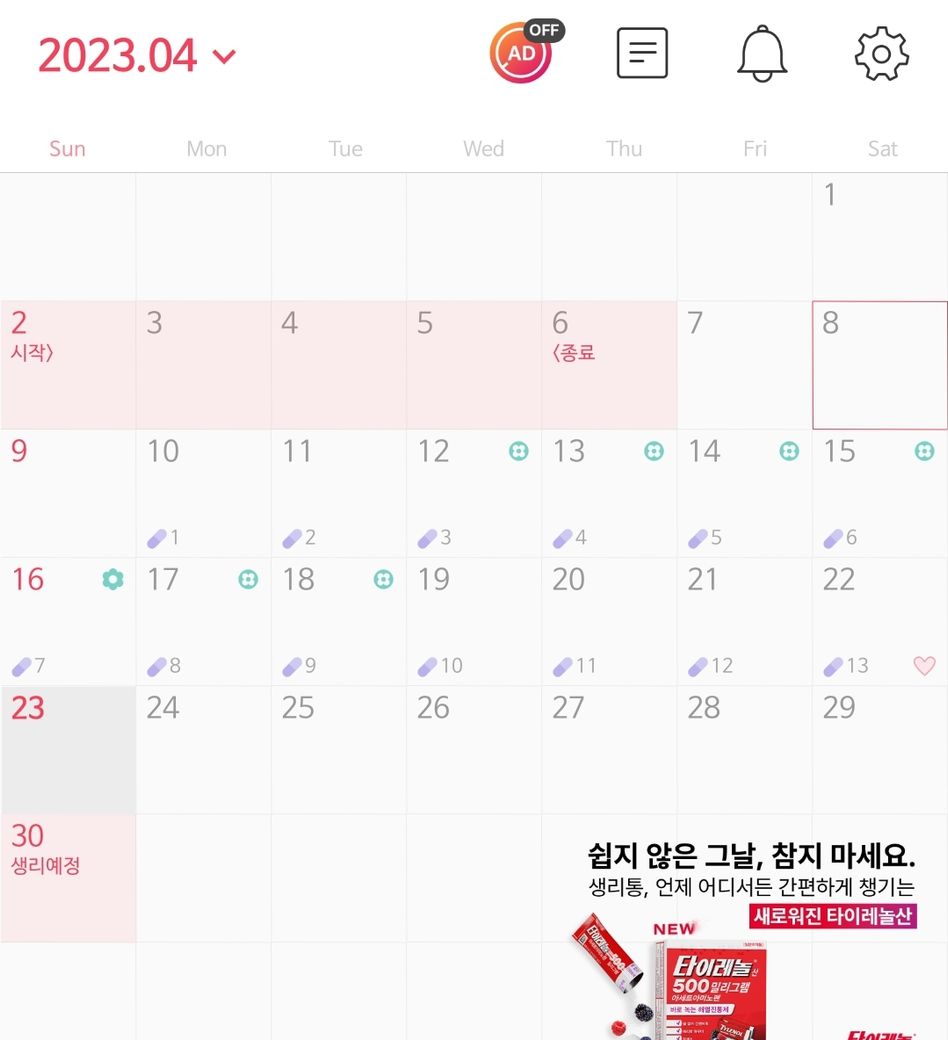 사진과 같이 4월 2일부터 6일까지 생리를 했는데 약 챙기는걸 까먹고 10일까지 먹지 못했어요 ㅠㅠ