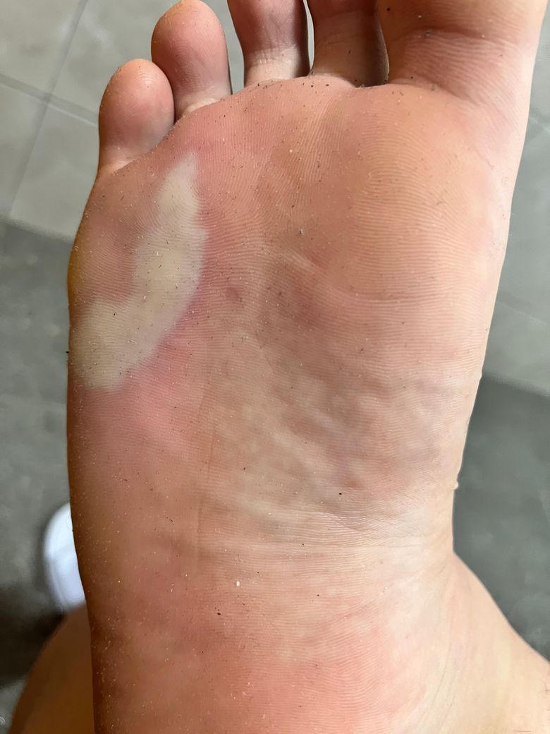 그냥 요즘 발이 계속 저런식으로 되어있어요 누르면 좀 쓰라린 느낌보다 안아픈? 정도구 저렇게 된거 빼고 딱히 별 이상은 못느끼겠는데 저게 뭘까요?ㅠㅠ 왜저러는걸까요ㅠㅠ
