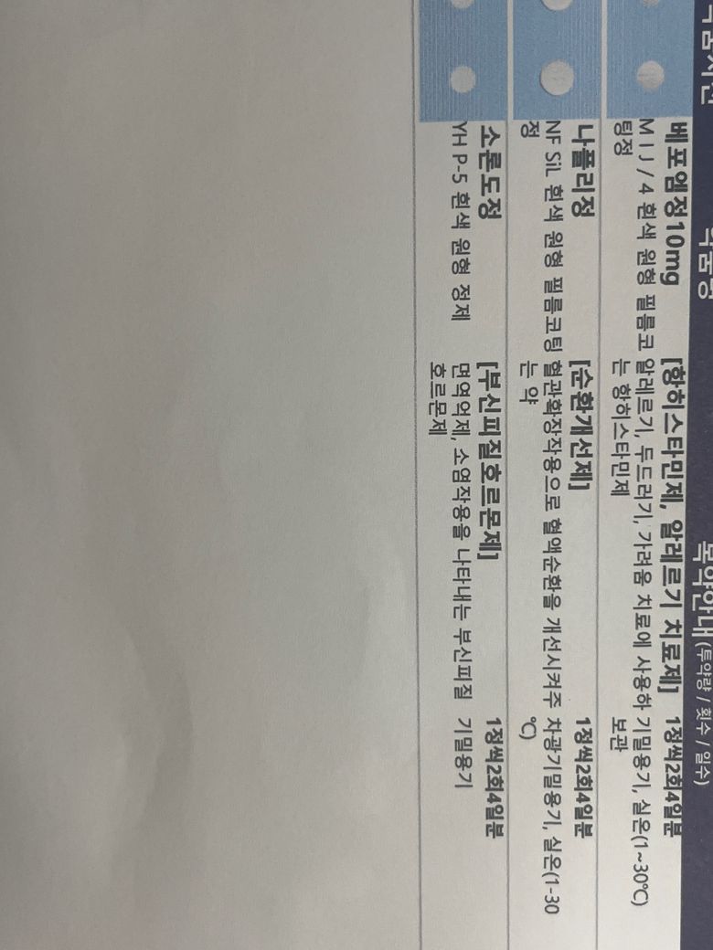 베포엠정 10mg 나폴리정 소론도정 1일 2회 4일분