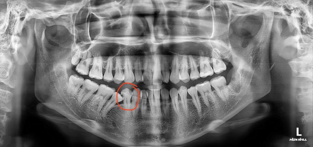 제가 치과 진료를 받는데 동그라미 쳐진 이빨의 신경과 충치가 가까워서 신경치료를 해야 한다고 하더라구요. 밑에 첨부사진은 그 치과에서 받아온 엑스레이 사진입니다.