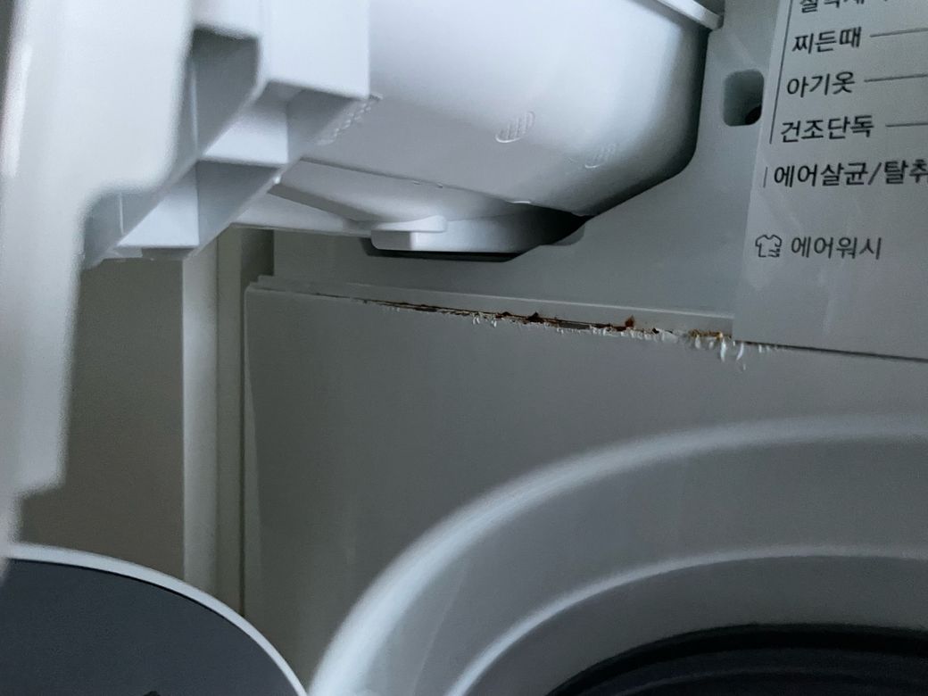 첫 입주로 4년 살다가 이사하게 되었는데 사진처럼 세제 투입구 밑에 녹이 슬었습니다. 녹이 슨거랑 제가 어떻게 조치를 할 수 없었습니다. 해당 부분 하자보수 하고 나와야하는걸까요? 제가 학생이라 이런부분을 잘 몰라서 여쭤봅니다...