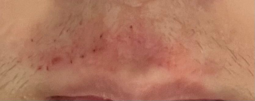 며칠 전에 인중용 왁스스트립으로 콧수염 부분을 제모를 했는데 제모 하고 난 뒤 주변이 빨갛게 올라오고 빨간 딱지?같은게 생겼는데