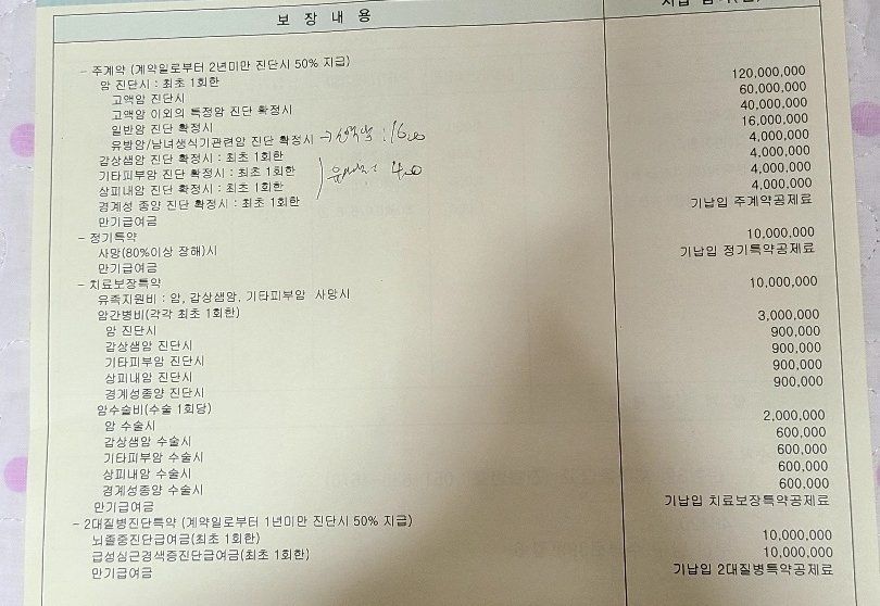 여기서 제가 우려하는 부분은 유사암과 2대 질병 보장액이 너무 적다는 점입니다.