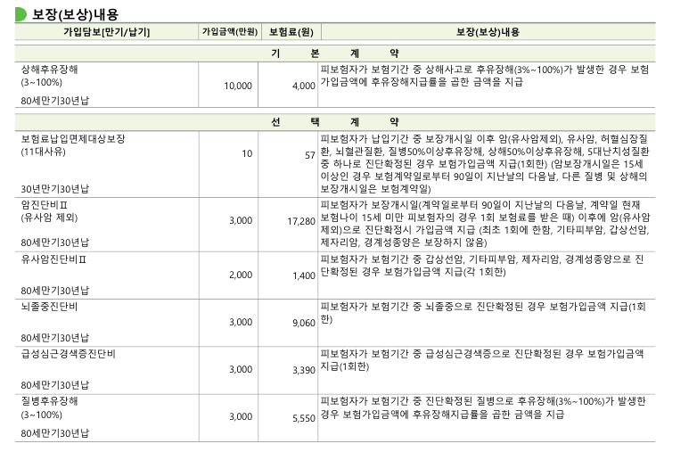 상해후유장해 1억, 질병후유장해 3천만원으로 구성되어 있구요.