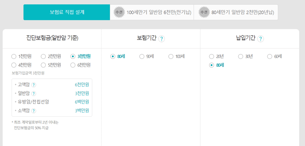 만약 유사암 2,000만원을 설정하기 위해서는 일반암 2,000만원을 같이 설정해야 하는건 참고하시면 됩니다. )