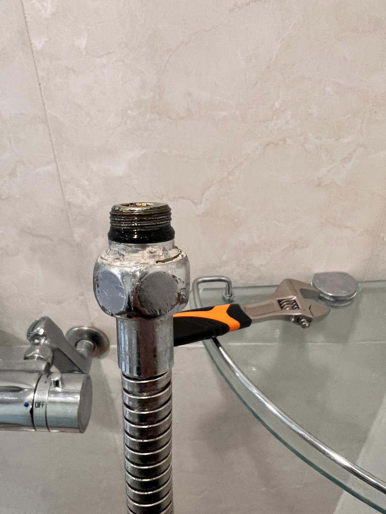 이번에 이사하면서 샤워기를 모두 교체하려고 하였는데 샤워부스 내 샤워기 연결구가 좀 이상해서 질문드립니다. 연결하려는 샤워기 호스는 일반적인 것이고 연결구가 맞지않아 설치가 불가능한데 어떻게 해야하나요???