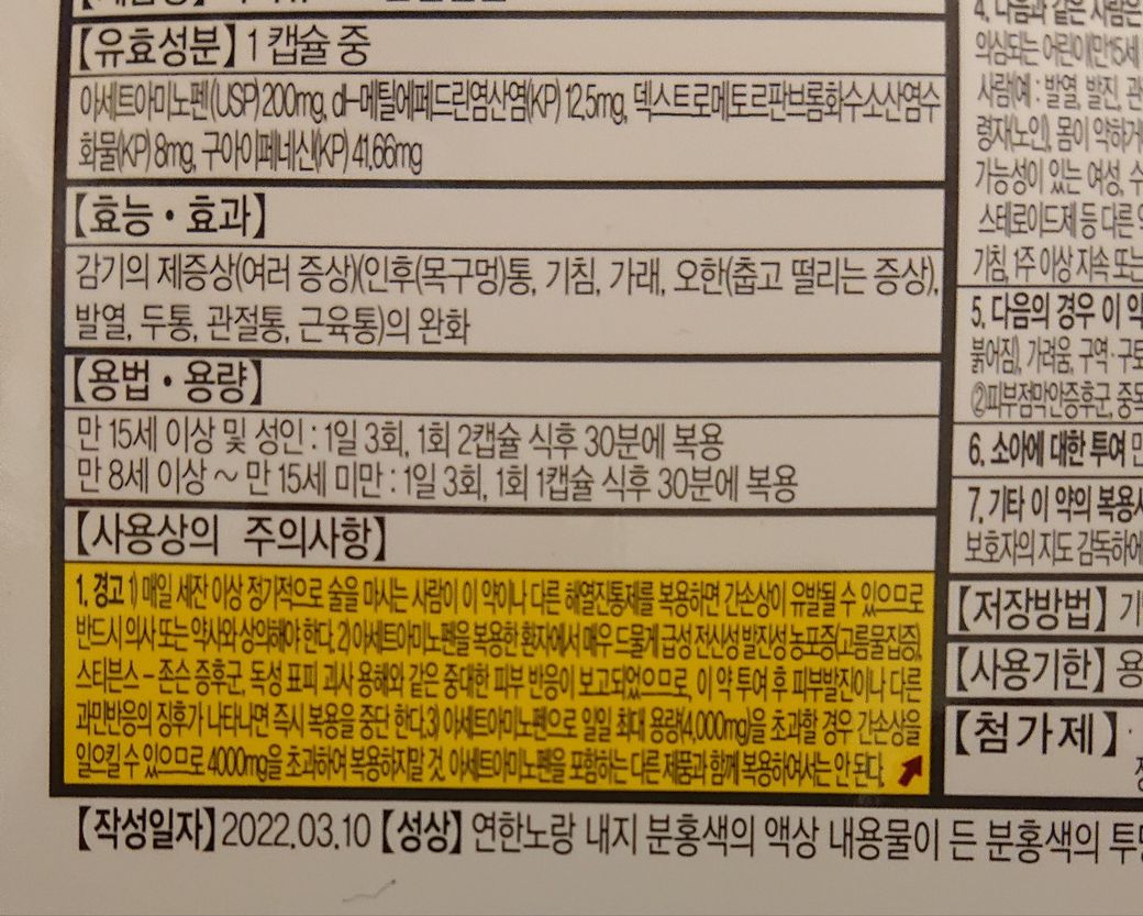 감기약을 따로 복용하지 않으셔도 무방합니다