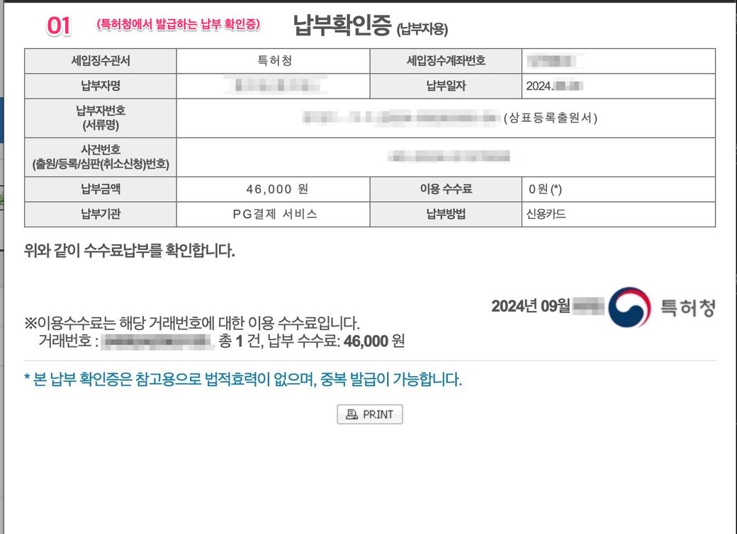 01번 서류 - 특허청에서 발급한 납부확인서