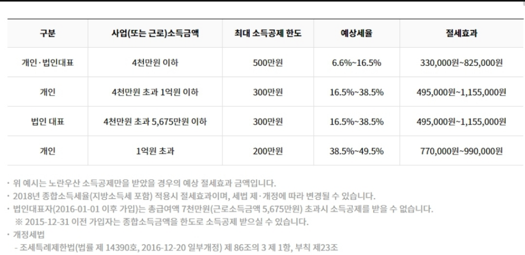 사업(근로)소득금액 4,000만원 이하 : 500만원