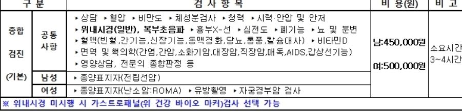 개인 종합검진 항목 사진첨부드려요