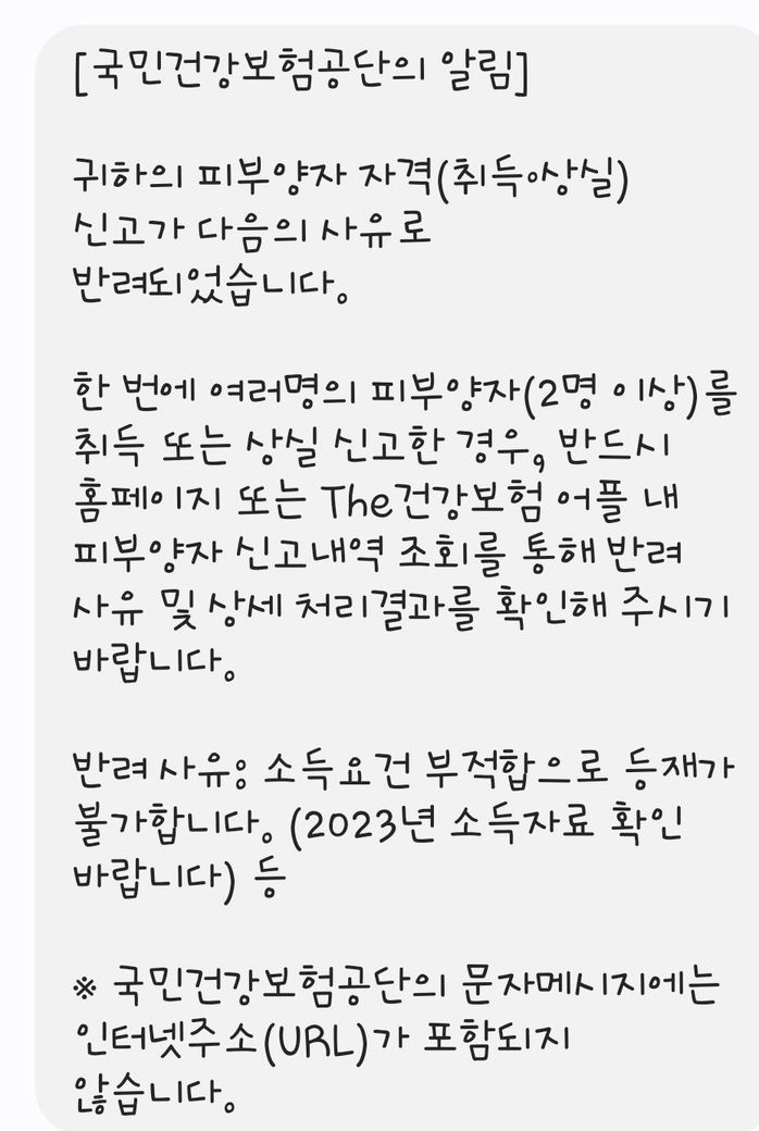 직장건강보험 피부양자 취득 반려질문요ㅜㅜ