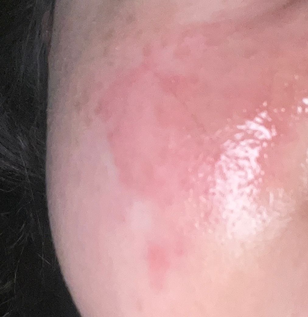 사진상 압출 부위를 중심으로 붉은 부종이 넓어져 있고, 눈밑까지 부었다면 단순 압출 자국보다는 자극성 피부염, 접촉피부염, 모낭염·봉와직염 초기 가능성을 봐야 합니다. 통증이 없고 가려움이 주증상이면 알레르기성·자극성 반응 가능성도 있지만, 얼굴은 염증이 번질 때 위험할 수 있어 1주일째 커지는 양상이라면 연고만 계속 바르는 것은 권하지 않습니다.