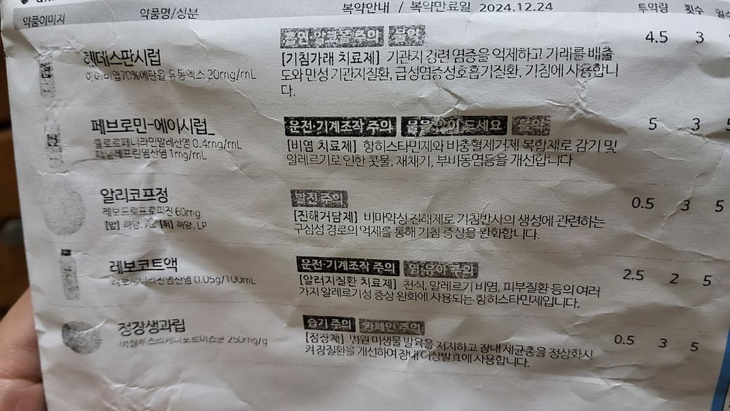 36개월 아기 감기약 (헤데스판시럽, 페브로민 에이시럽, 알리코프정, 레보코트액, 정장생과립) 먹는중인데 이마가 찢어져서 오늘 꿰맸네요ㅜㅜ항생제 (유한세파건조시럽, 비오플) 처방 받았는데 동시에 복용해도 이상없을까요?