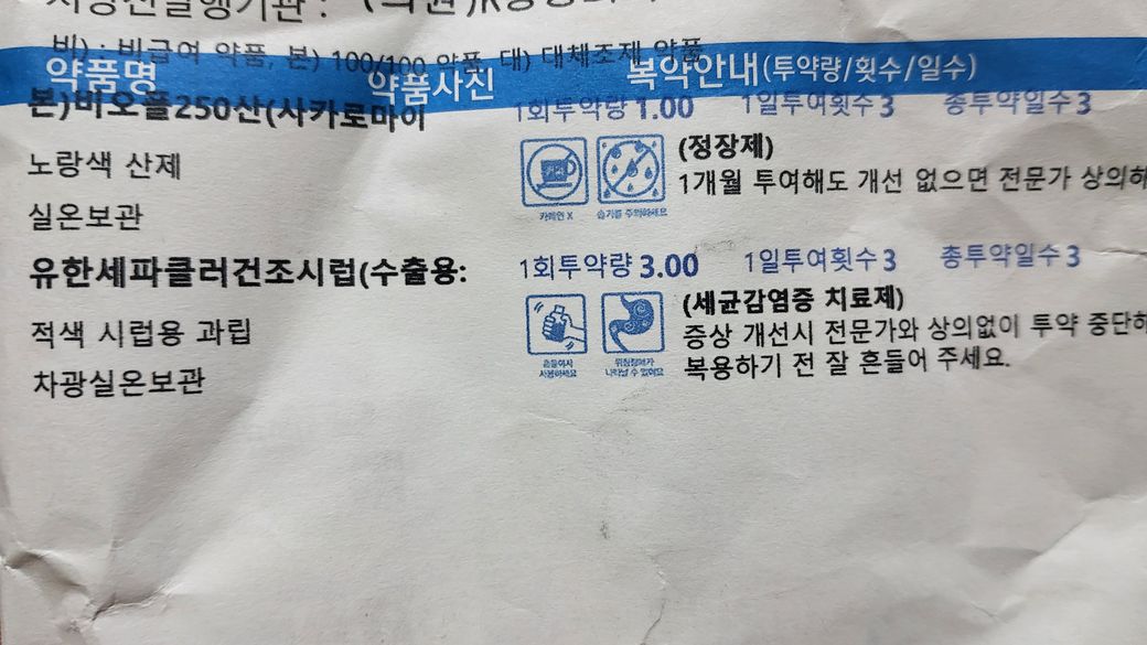 36개월 감기약복용중 꿰매서 항생제 처방...동시에 복용해도 되나요?
