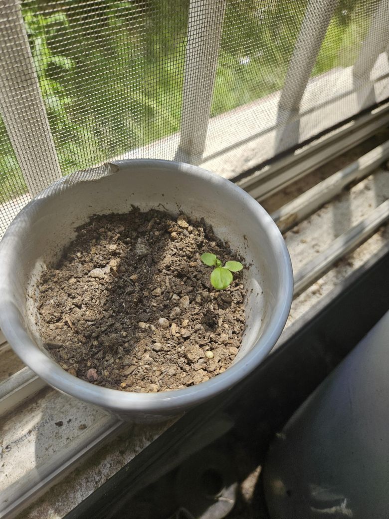 로즈마리 새싹처럼 보이진 않습니다. 로즈마르 새싹은 잎이 좀 더 길쭉하고 얇게 생겼는데 아무래도 다른 씨앗이 발아한 것처럼 보입니다.