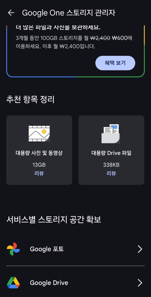 저장공간이 없어서 지우고 있어요. 근데 Drive 파일이 있다는데 리뷰를 눌러봐도 아무것도 안 떠요. 왜 이렇고 지우려면 어떻게 해야 하나요?