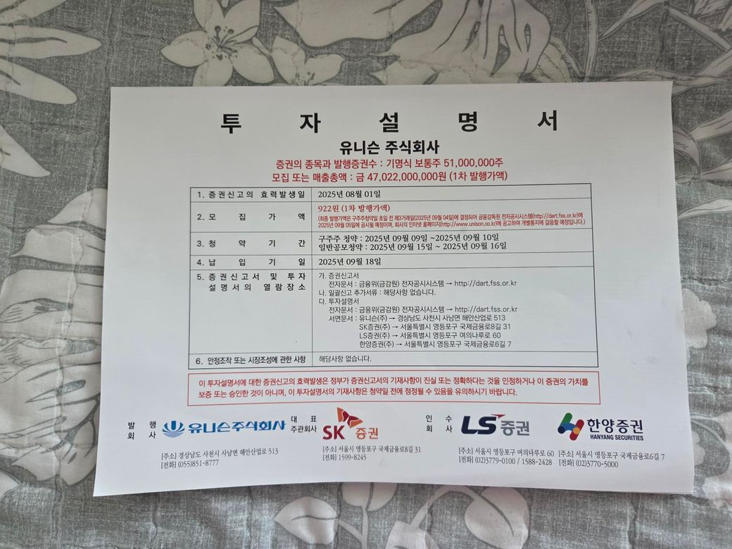 저는 증권 이용을 하지 않는데 투자 유니슨 주식회사라는 곳에서 설명서라는 책자가 왔고 사진 속 정보들이 기입 되어 왔습니다 어떻게 된걸까요?