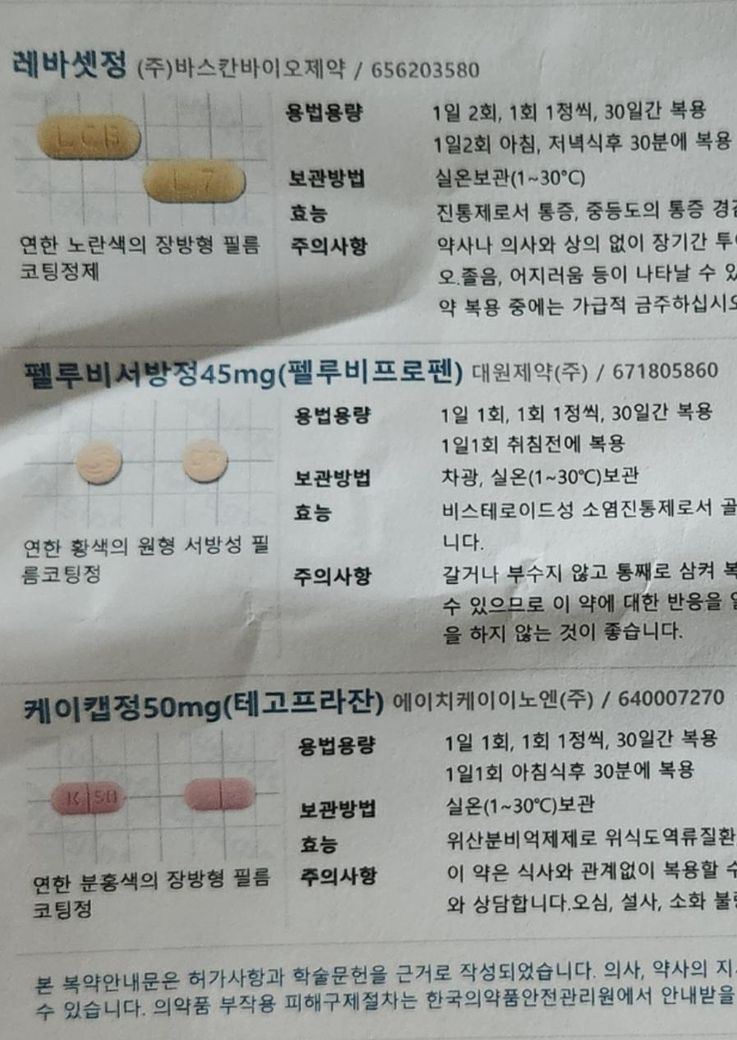 딱히 이약의 부작용이라고 보기에는 좀 어렵긴하네요. 제산제를 오래 드셨고 위장장애가 좀 있으시면 SIBO로 인한 주사병을 의심해보겠는데 단기간 복용이라 아닐 듯 하고 일단 레바셋을 중단해보시기 바랍니다.