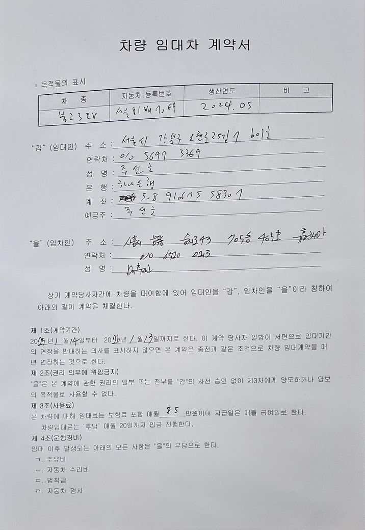차량임대 계약서, 임대대금을 안주는데