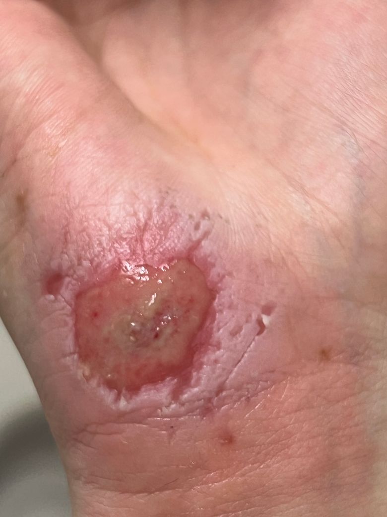자갈에 넘어져서 피가 철철나서 자갈 치우고 휴지로 지혈한다음에 남은 조그만한 자갈을 정리하고 근처 편의점에서 소독용 알코올 뿌리고 메디폼 붙여놓으면서 6시간마다 갈아줬습니다 감염인가요? 이니면 진물이 굳은건가요?