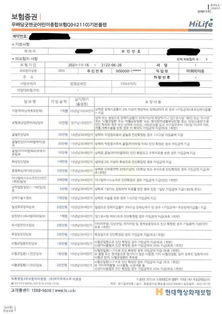태아(어린이 보험)보험 제대로 잘 가입한건지 잘 몰라서 문의 드립니다.