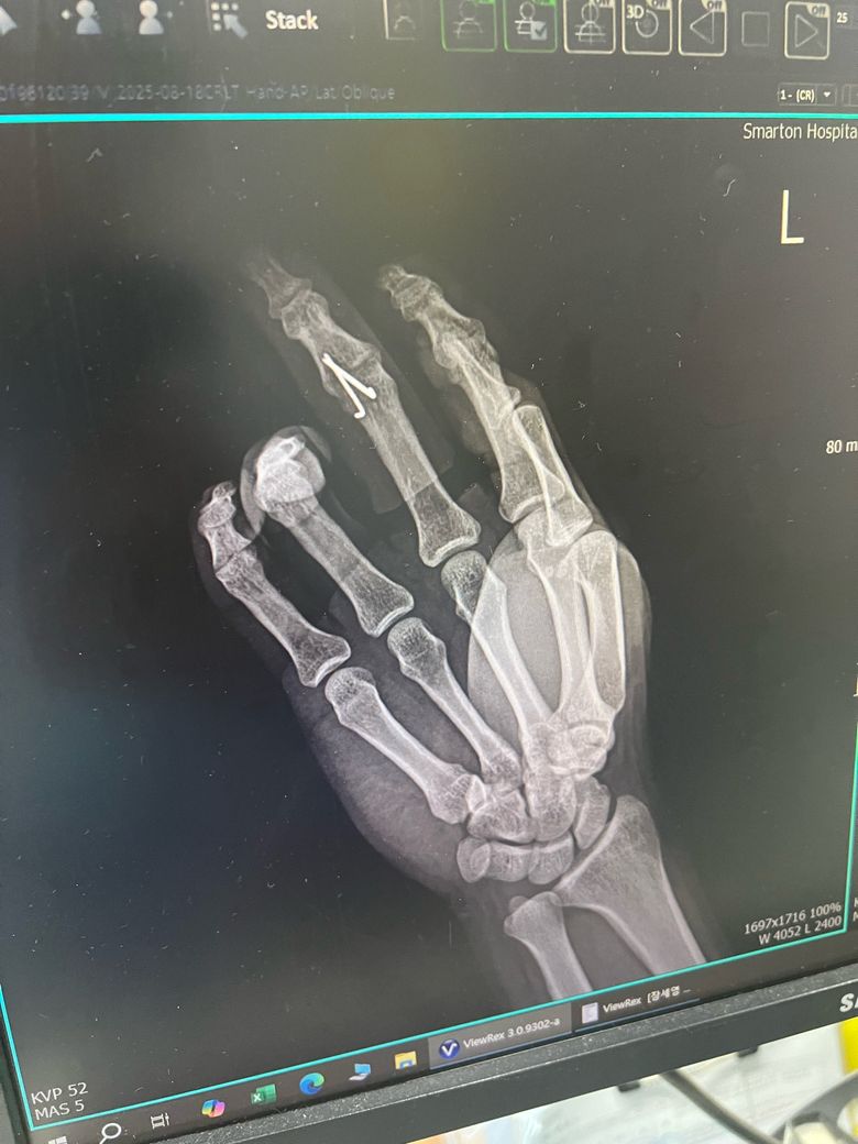 엑스레이상 핀만 박았지 골절나서 빠진 뼈부분은 그대로인거같아서요. 확인 좀 부탁드립니다. 그리고 혹시나 추후에 핀을 뽑을때는 어땋게 뽑나요