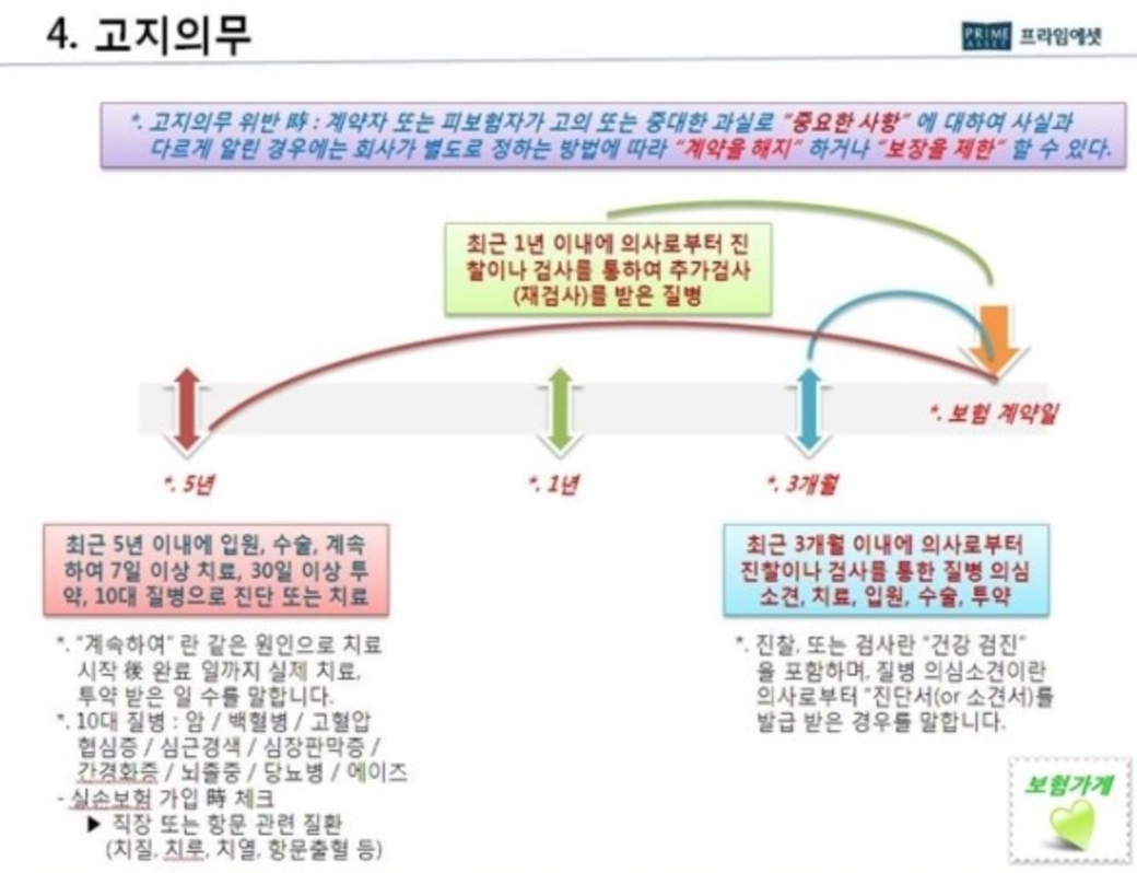 알고계신 내용이 고지의무 사항의 일반적인 부분입니다.