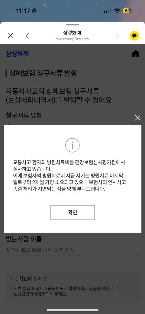 실비의 경우에는 병원비 산정에 시간이 걸리게 됩니다.