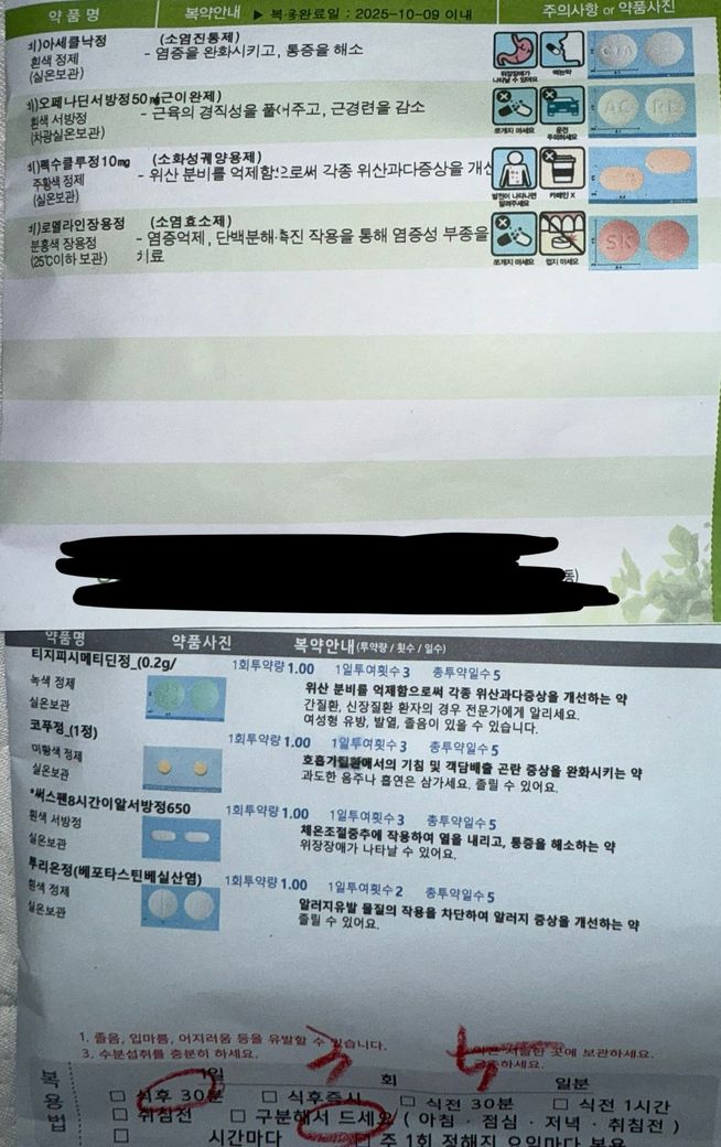 감기약 먹고 있던 중에 정형외과 약을 먹게 됐는데