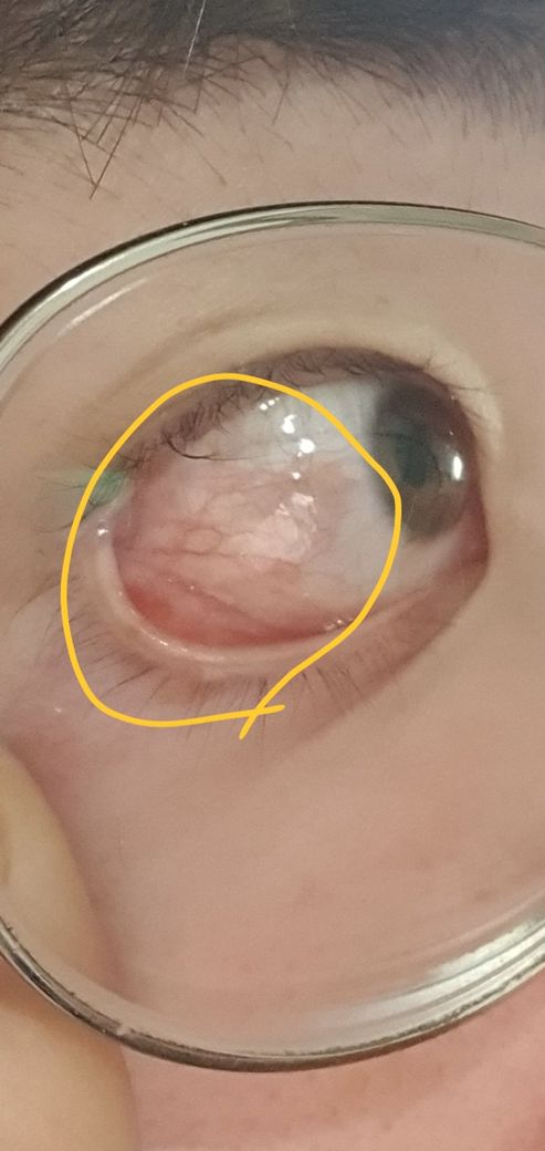 사진으로만 보았을 때에는 결막염과 결막 부종이 동시에 있는 것으로 보이며