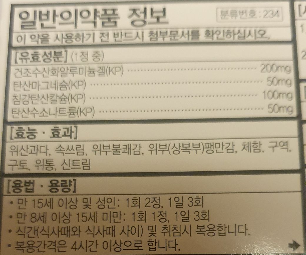 같이 먹으려고 사온 위장약은 식간에 복용하라고 되어있네요