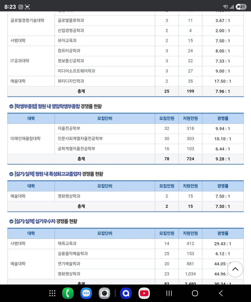 해마다 변동사항이 많기 때문에 경쟁률이 어느 정도인지, 작년과 비교를 해보는 부분도 필요로 하겠습니다.